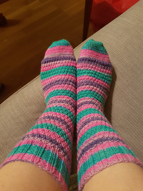 I really, really love these socks, and the yarn is really super soft! It's Filcolana Arwetta Classic, and in this yarn you can really tell the difference between superwash wool and merino! I will probably buy more of this yarn in the future, but right now I'm trying not to buy lots of stuff, as we're doing a lot of stuff with the house this year (more about that later).