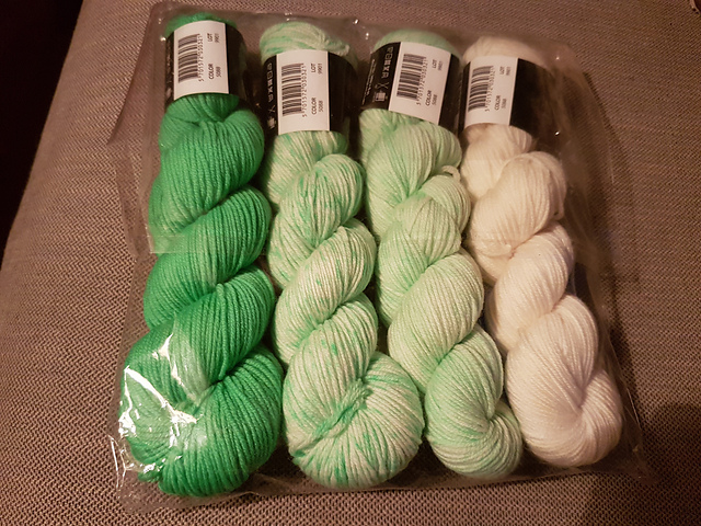 Oh, and I fell off the non-shopping wagon the other day too, and a HUGE yarn package came in the mail the other day! I put in an order for some new needles at a Danish yarn store, and got 8 skeins of sock yarn plus a gradient kit in sport weight merino: