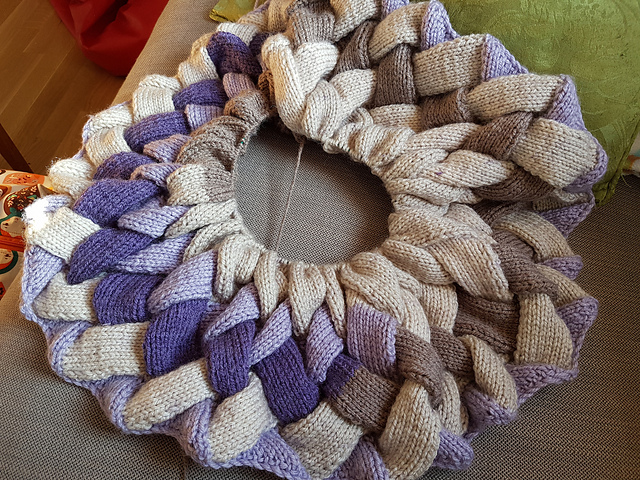 The last project I started when I was ill was the Entrelac blanket I told you about last time. I've already used up one whole skein, and I think I'm about 25 % done when considering how big I want it, so I think I'll have to buy one more skein eventually.