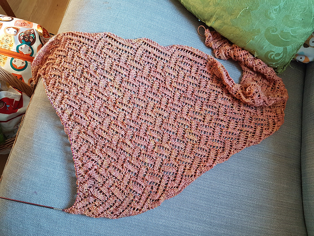 I've also started a new lace shawl for myself. I chose the Skuld shawl by Anna Dalvi, and I'm using Nyansera Sundari sik yarn in the colourway Spice Market.