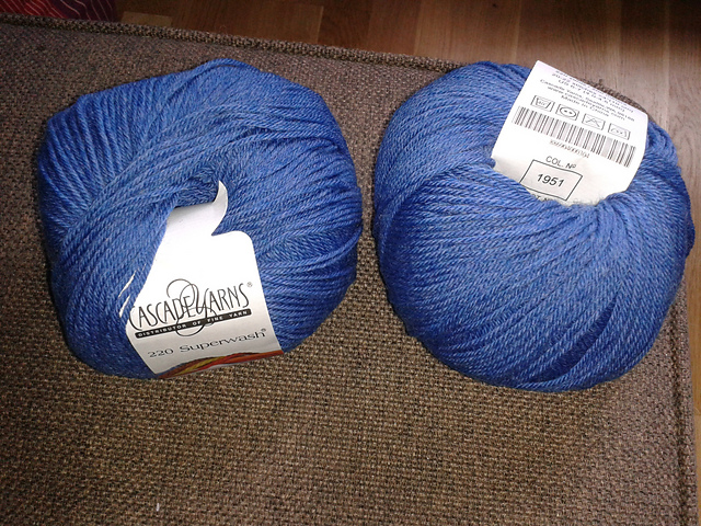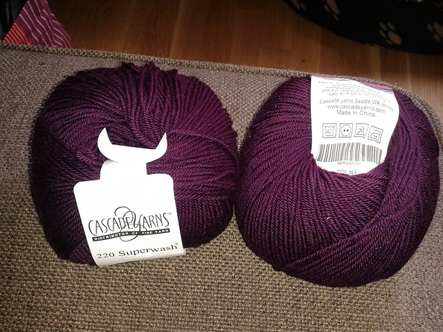 I also bought some new yarn a couple of weeks ago. I ordered another skein of Manos del Uruguay for the Austin Hoodie as I wasn't sure I had enough to finish, and I noticed that that colour was to be discontinued. So I got three new skeins, as I really love it, and I figured I could just use the left-overs for something else eventually. It turned out I didn't actually need any of that yarn, but I'll just keep it in the stash for now. Along on that order I also got four skeins of Cascade 220 superwash, in colourways Saphire Heather and Marionberry, to make some baby clothes for Ella.