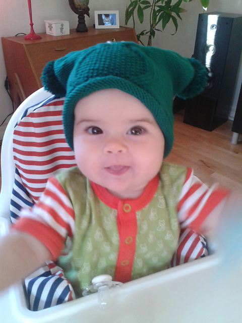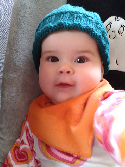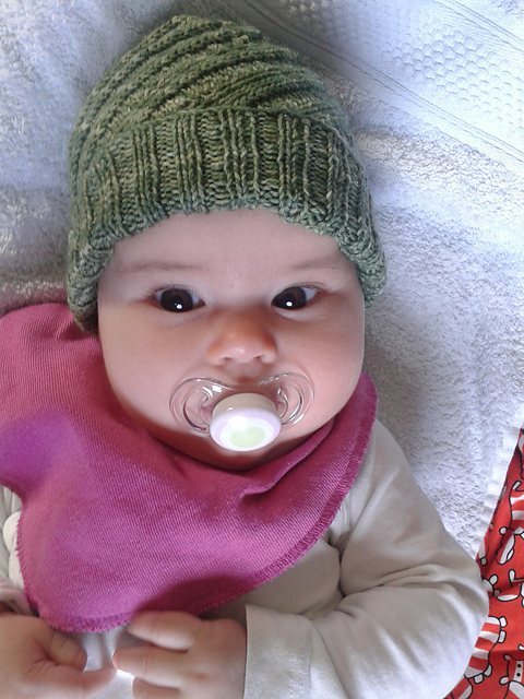 Then I cast on for another hat, mostly to use up the last of the Wollmeise yarn. Yesterday I finished the Owl baby hat, and it fits Ella right now. It is a little bit wide, but it is fine. I like this one a lot, and it was a lot of fun to knit the owl too.