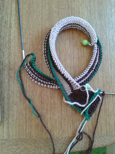 Finally I also cast on for a new cardigan for Ella, and this one is so much fun! It's the Minni cardigan, and I read about it on the Yarn Harlot blog as she's making one right now. It has stripes and short rows and intarsia colour changing, so it is a challenge, but so far it's fun. I took a picture when I had just started, and you'll have to make do with that. I'm making it in three different sock yarns: Gepard Cash-soft in pink and KnitPicks Stroll in Merlot for the main body, and Fleece Artist Merino 2/6 in Blush for the accents (the green yarn in the photo is just the provisional cast-on).
