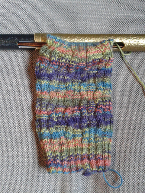 Next up was a pair of socks for me, a pair of vanilla socks in Fibernymph Dye Works Bedazzled sock yarn. I managed to snag a set of Nyan Cat sock yarn in one of her updates, and I cast them on almost as soon as I got the yarn:
