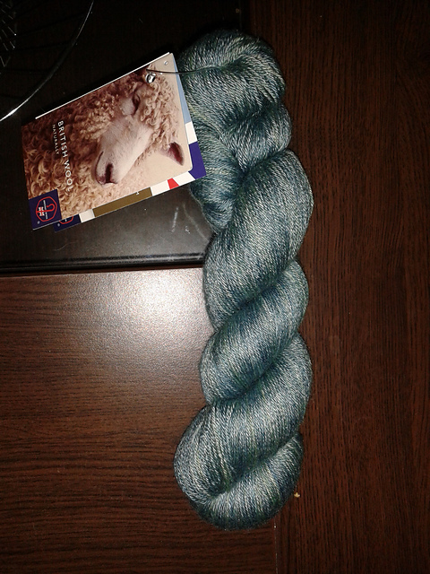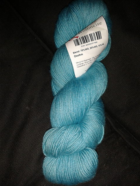 I also ordered two skeins of Wollmeise Blend yarn (70 % merino/20 % cashmere/10 % nylon, 499 m/150 g), the new sport weight yarn, from Wollmeise, in colourways Ooohm (the teal one) and Krokodil (the green one), that I plan on using for a striped sweater or cardigan for me.