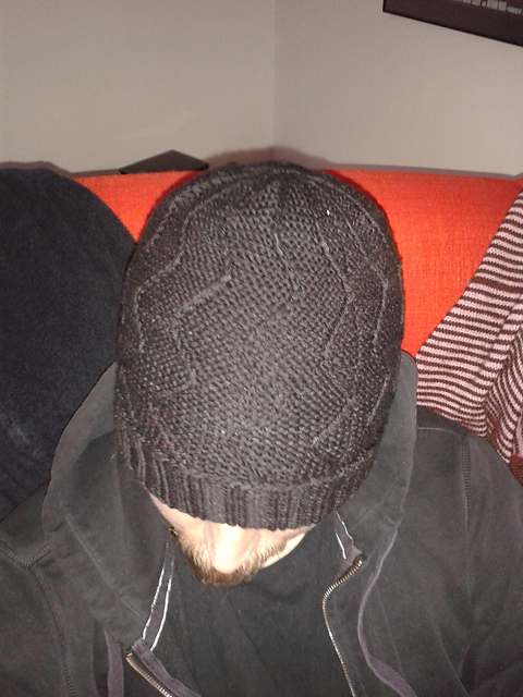 The final hat is a smidge too big, but I just won't knit it a third time so he'll have to be satisfied. It was a fun and easy knit though.
