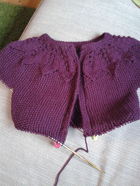 As I finished the Korrigan cardigan for Ella, I immediately cast on for another one for her. I'm making the Star Bright cardigan (and I'll make the matching hat too, if I have enough yarn left over), in Cascade 220 superwash, in the colourway Marionberry. I'm using this as my break knitting at work, and it goes by really fast. I should be done some time next week, I think.