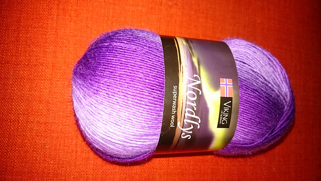 Viking of Norway Nordlys (75 % wool/25 % nylon), in the colourways Purples 969 and Green/Orange 934. I'm planning on making a colourwork hat for myself out of the green/orange one.