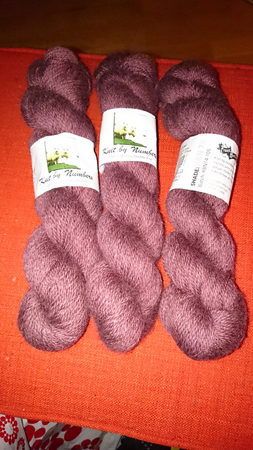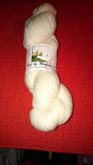 John Arbon Textiles Knit By Numbers (100 % wool), in the colourways Purple and White. I've used up all of this too, in a sweater, hat, scarf and mittens for Ella, which I'll also show you further down.