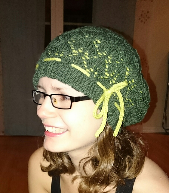 She has used this one a lot this Autumn, before it got too cold for a fingering weight hat, but she looked very cute in it!
