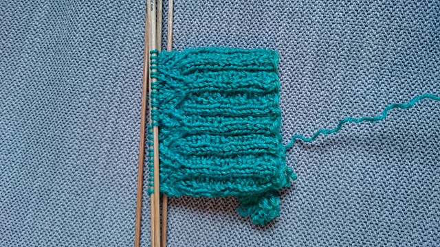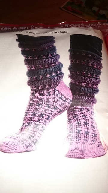 I still wear them, but I don't like that they are so different. The yarn was a bit stiff to work with, and even though it has softened a bit with washing, I still didn't enjoy working with it, so I'll never buy from her again. Also, I've heard rumours that there's been some trouble with orders not being sent from the shop, so I'm just as glad.