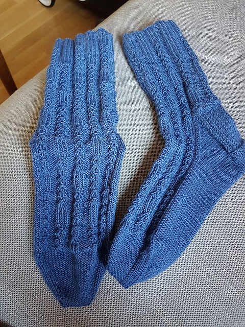 I am very pleased with oth these pairs, and even though Thomas probably won't use his until this coming winter, he really likes them. His are made with Marks & Kattens Fame yarn, in a jeans blue colourway. Now that Thomas' socks are done, I'm trying to focus my attention on my Tiber cardigan. It's going slowly, but I hope to make a dent in it today, and possibly tomorrow before Thomas and Ella get back. I haven't gotten any new photos of that one yet, but it still looks almost the same as it did last time.