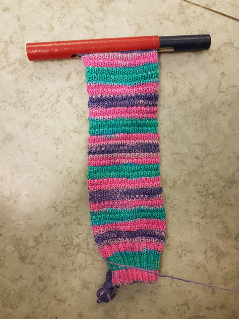 On the flight there I started a new pair of socks, to keep me occupied. I didn't have much knitting time during the rest of the week, as it seems we spent most of the time in the water, but by now I'm almost done with the first sock.