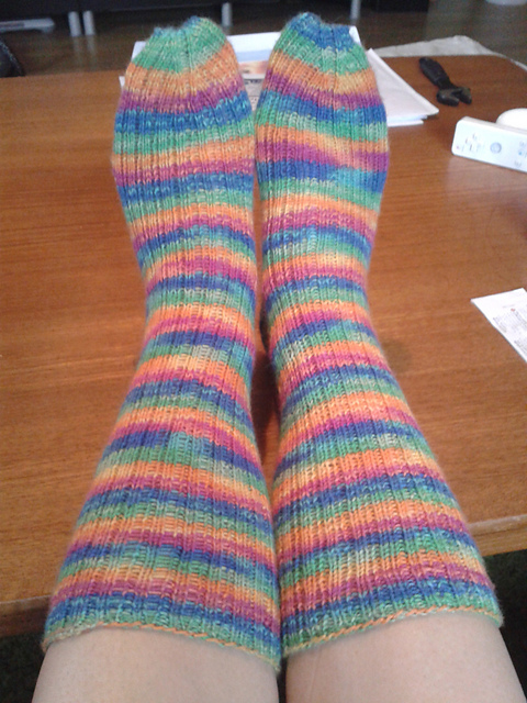 Made with Regia sock yarn (75 % superwash wool/25 % nylon) in the colourway Ringel Clown