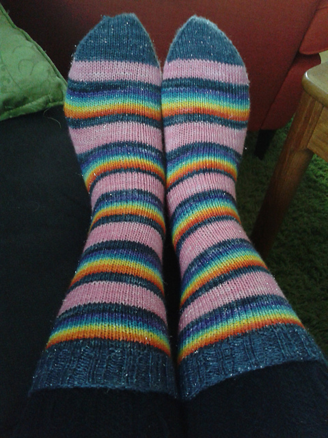 Made with Fibernymph Dye Works Bedazzled sock yarn (75 % superwash merino/20 % nylon/5 % stellina) in the Nyan Cat colourway