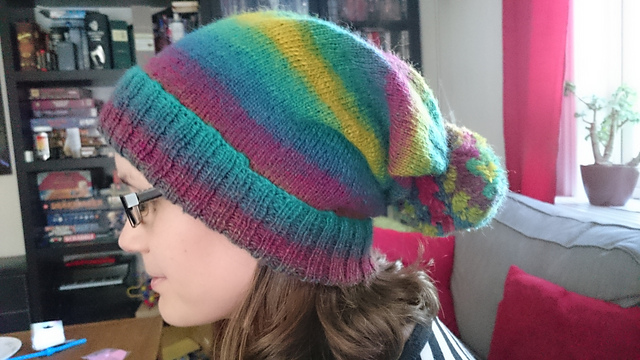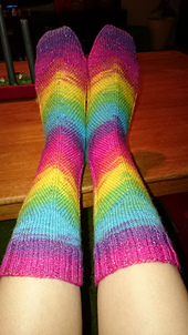 Made with Fibernymph Dye Works Bedazzled yarn (75 % superwash merino/20 % nylon/5 % stellina), in the colourway Nyan Cat.